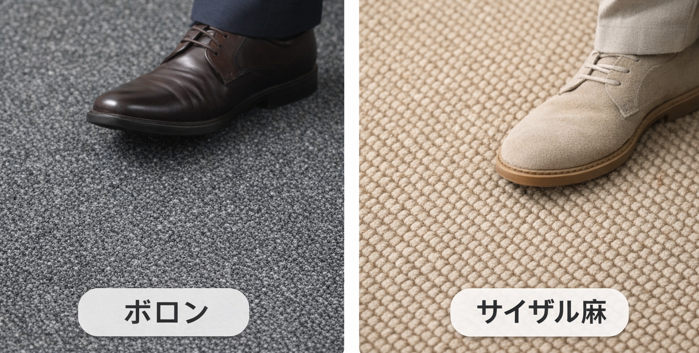 執務室とは異なる「ボロン」や「サイザル麻」の床材を使い