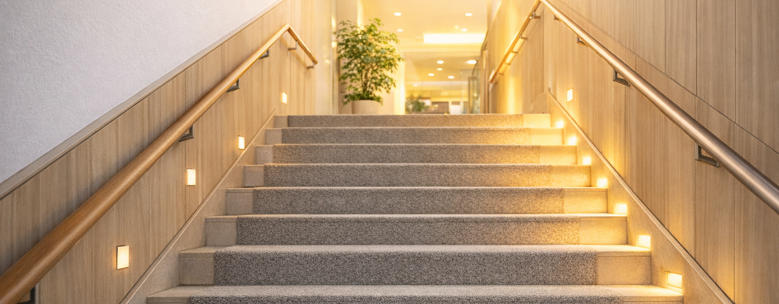 階段室: 歩きたくなる「健康経営」へのインテリアアプローチ