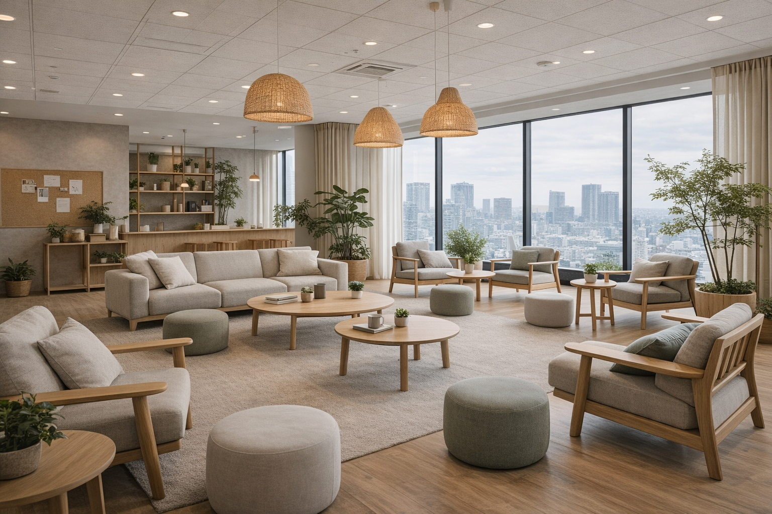 壁や照明、働く人の動線と家具を「逆算して」設計することで、オフィスの