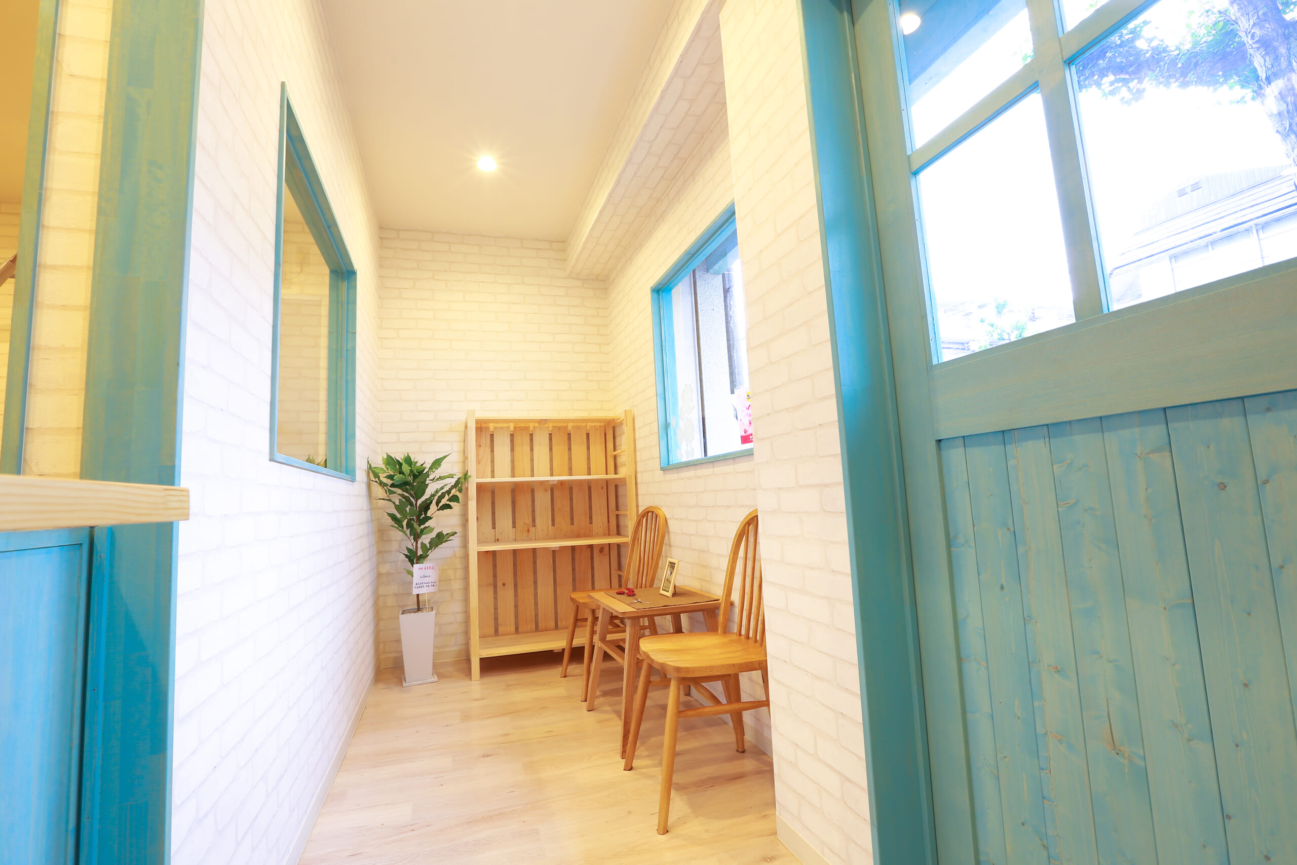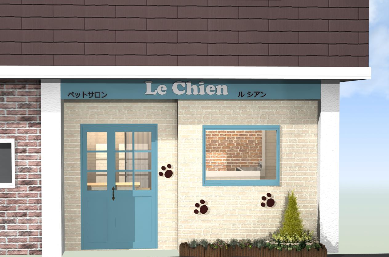 「お客様の大切なペットを明るくオシャレな空間でさらにきれいにしてあげたい。地域密着で、アットホームなトリミングサロンにして欲しい。」というオーナー様からのご要望でした。木と水色を基調とした内装でデザインし、優しく、明るい空間ができあがりました。トリミング室はレンガのアクセントクロスを使用しました。また、看板やロゴにも力をいれ、お客様にわかりやすく印象に残り易くなるよう工夫しました。